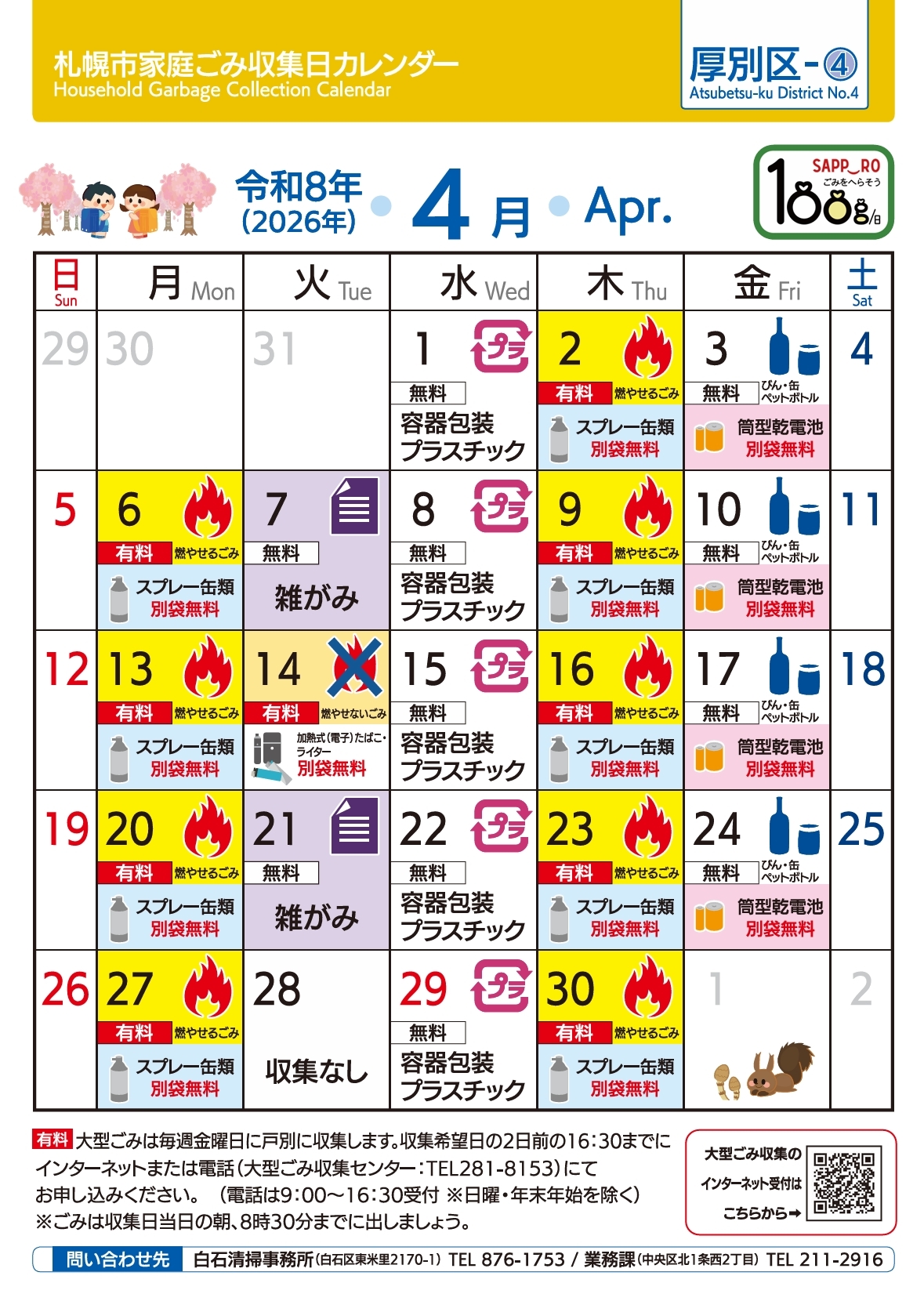- 2023.10.01 (お知らせ)11月Ⅰ日より、大型ごみ収集のインターネット受付が始まります。