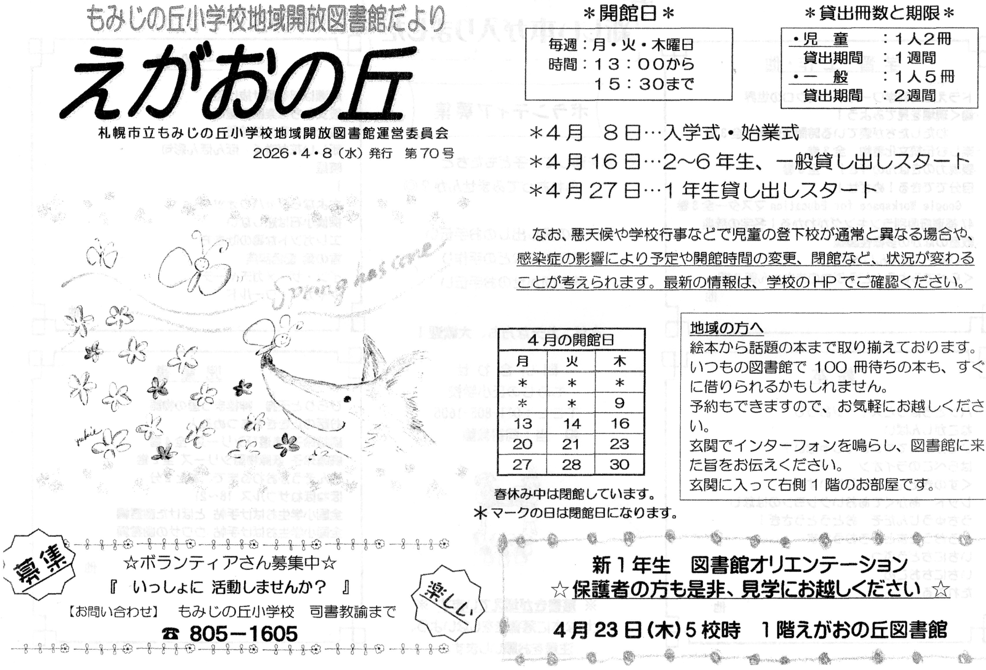 (2026.2.2)えがおの丘69号(図書館だより)