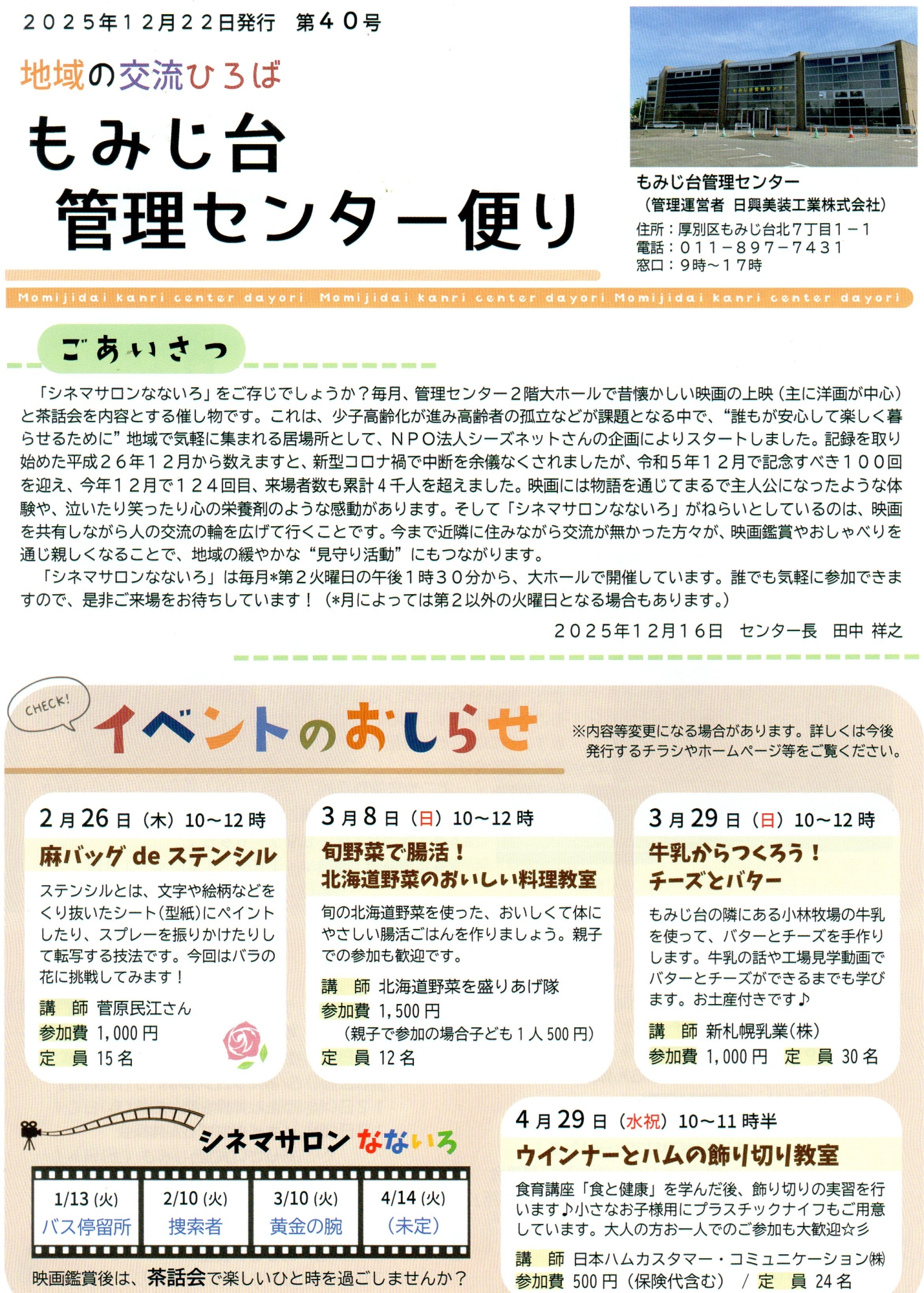 (2025.1.28)もみじ台管理センター催しのお知らせ
